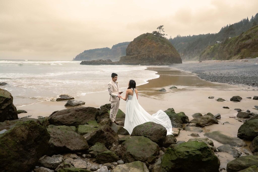 Fall is probably the best time to elope on the Oregon Coast. September and early October still have summer-like temperatures, but with way fewer tourists. Popular locations like Cannon Beach and the Samuel H. Boardman Scenic Corridor become far more peaceful, allowing for a more intimate and meaningful ceremony.