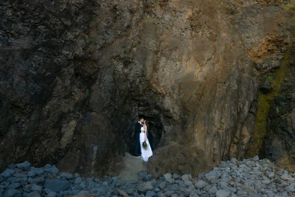 Eloping on the Oregon Coast in the winter is perfect for couples who love the idea of a dramatic, intimate, and truly unique elopement experience. If you’re drawn to the idea of stormy seas, misty mornings, and cozying up after your vows, winter might be the best time for you! Winter is the least crowded season on the Oregon Coast and you’ll have epic beaches like Cannon Beach and Hug Point practically to yourselves.
